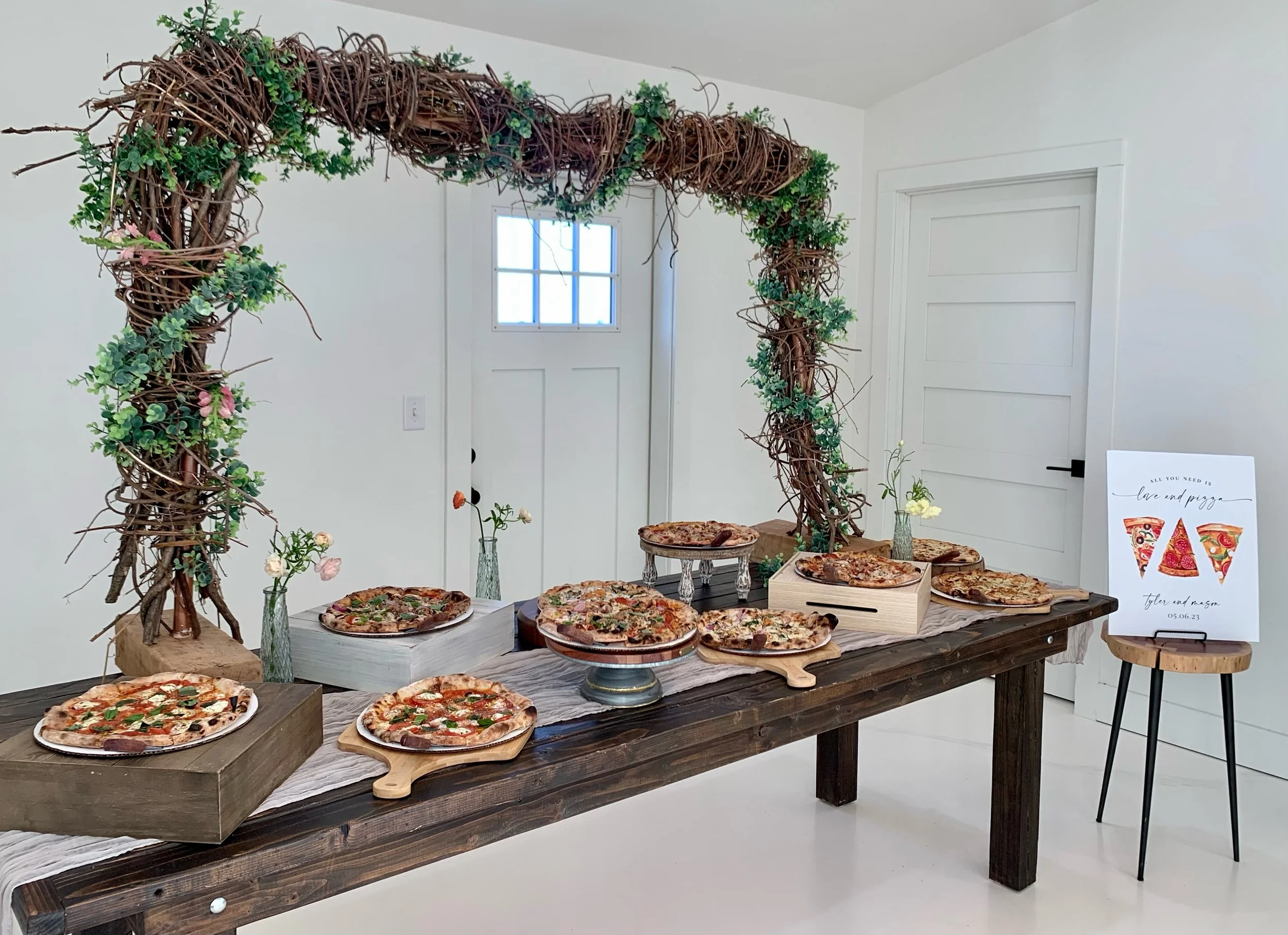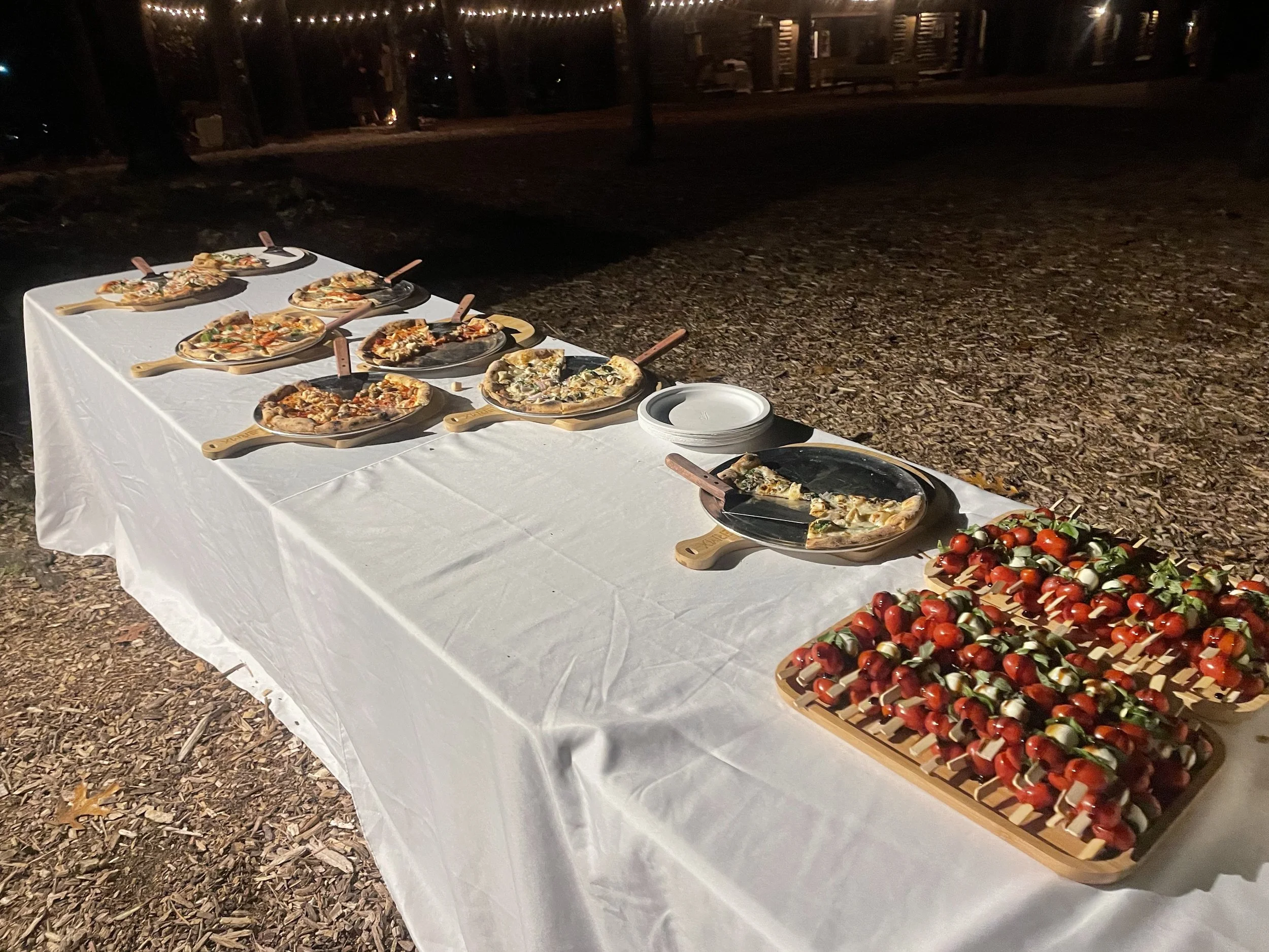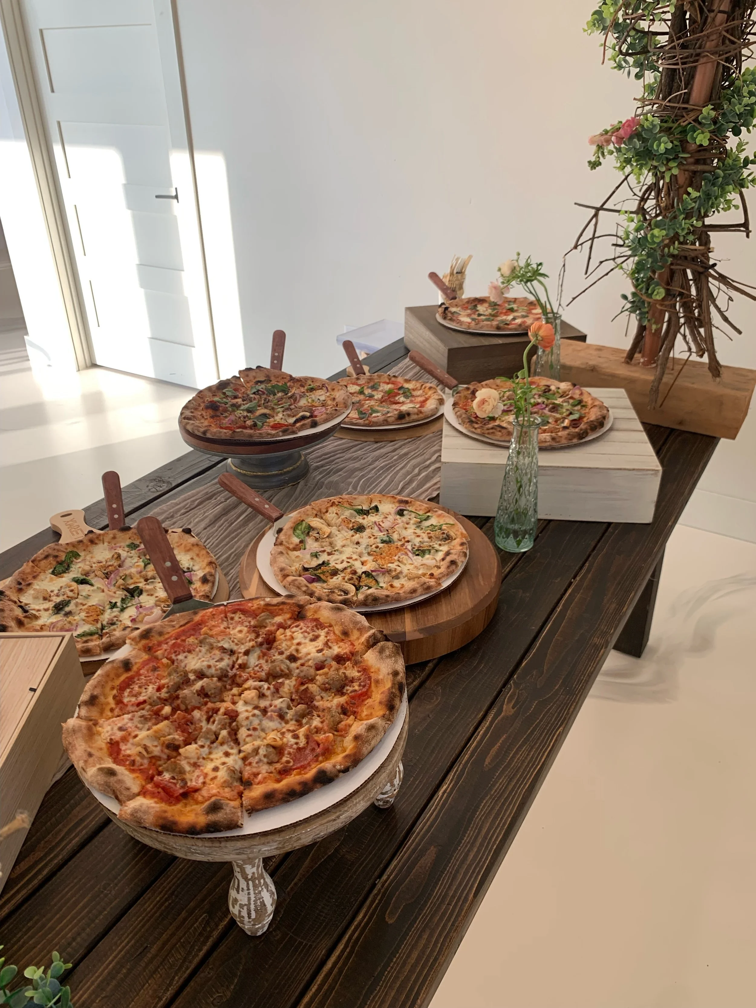 For most events, we offer a buffet style of 3 to 4 pizzas of your choosing. We also have a house salad and vegan options available for an additional charge.